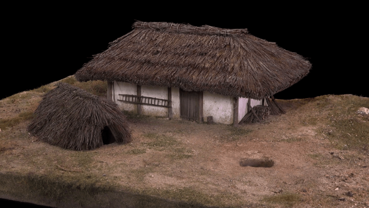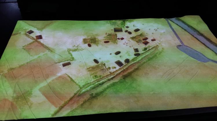 Cette installation audiovisuelle en vidéo mapping retrace l’évolution d’un village médiéval du VIIe au XIe siècle, d’après les fouilles archéologiques menées sur le site de Saleux, dans la Somme. Elle se compose d’une maquette en volume, sur laquelle sont projetées des aquarelles et animations, et d’un film diffusé simultanément sur un moniteur situé à l’arrière de la maquette.